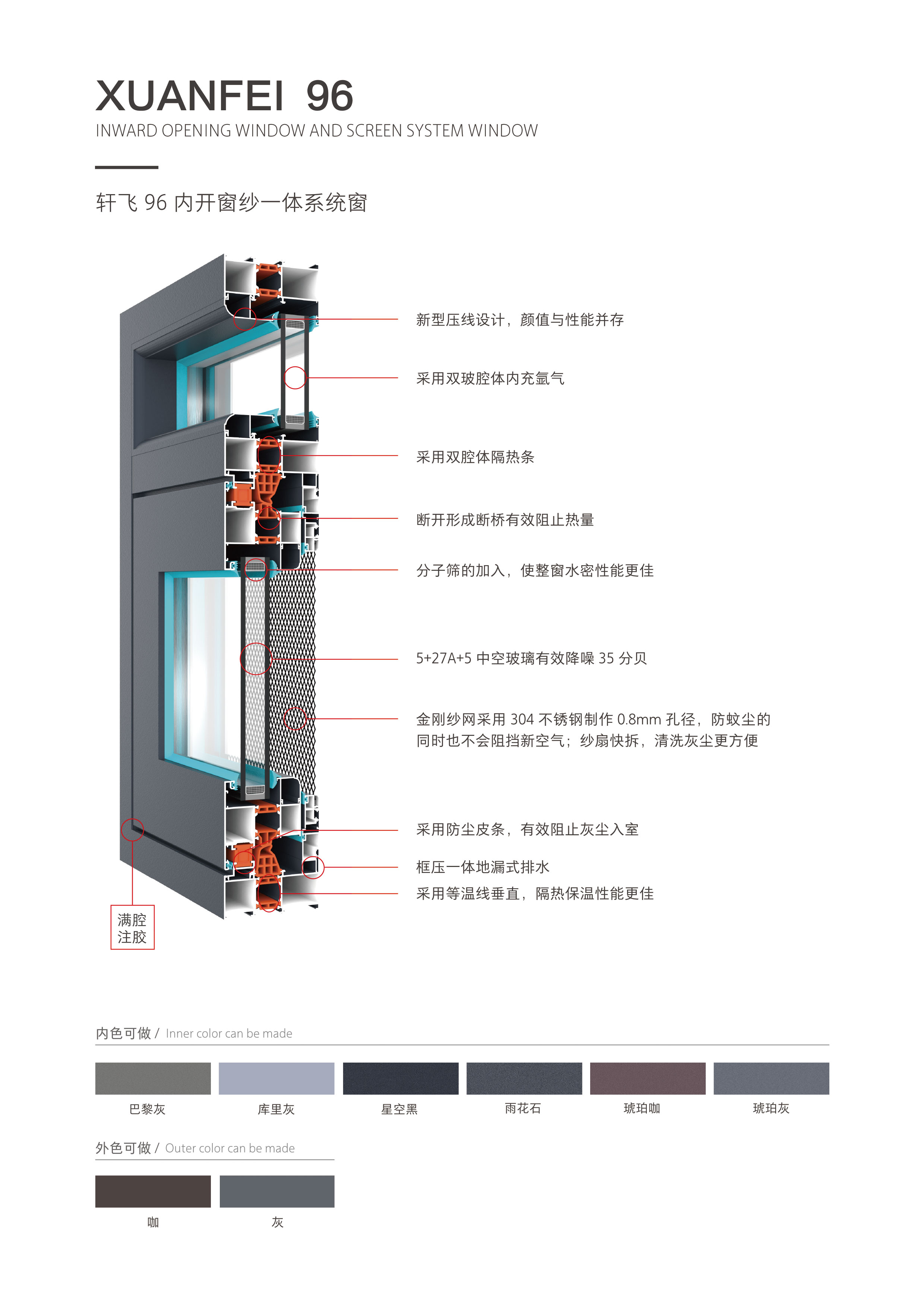軒飛96內開窗紗一體系統窗
